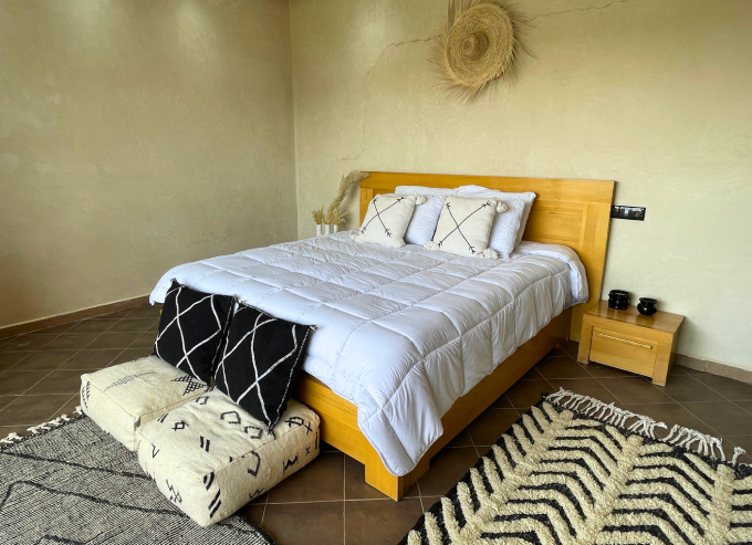Discover a soothing blend of Moroccan tradition and modern comfort. Soft textiles and local artworks create an authentic yet elegant feel. Your private bathroom includes a modern shower, plush towels, quality amenities