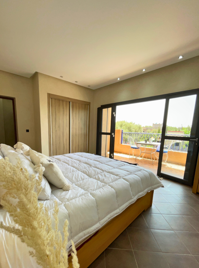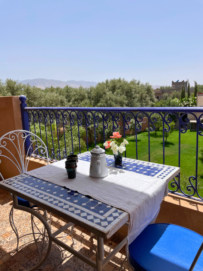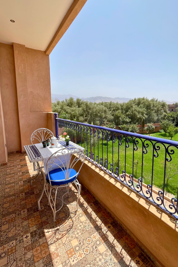Located on the first floor, our Suite is a haven of light and space. Large windows and a private terrace open to sweeping views of olive groves and the High Atlas Mountains.